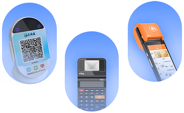 购买我们的固定收款码牌和云音响、扫码盒子、POS机等手持收银设备,立即实现便捷的收款与分账流程