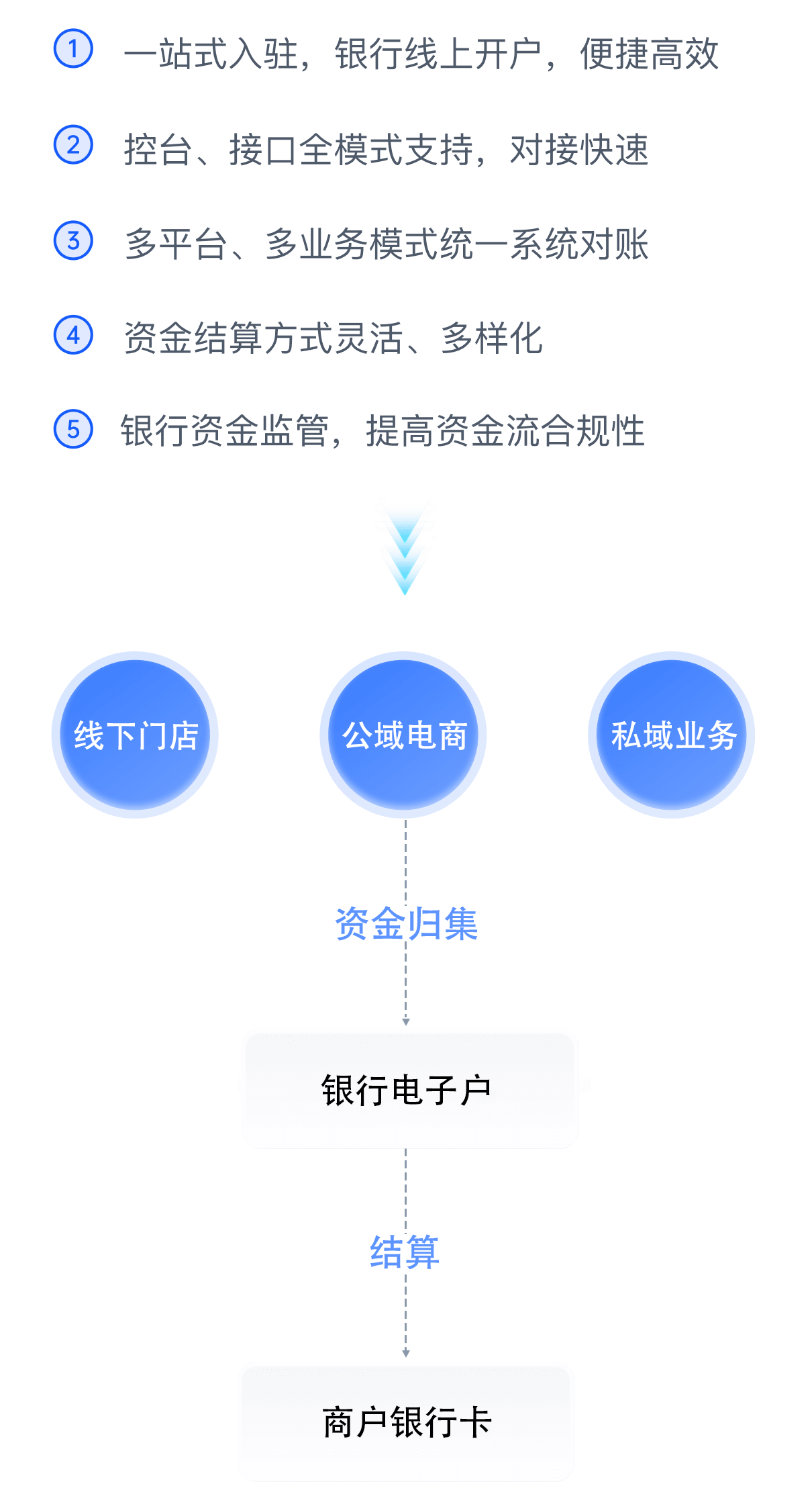 依托银行与收收单机构电子账户构建双账户架构,实现高效合规的资金清分结算体系。